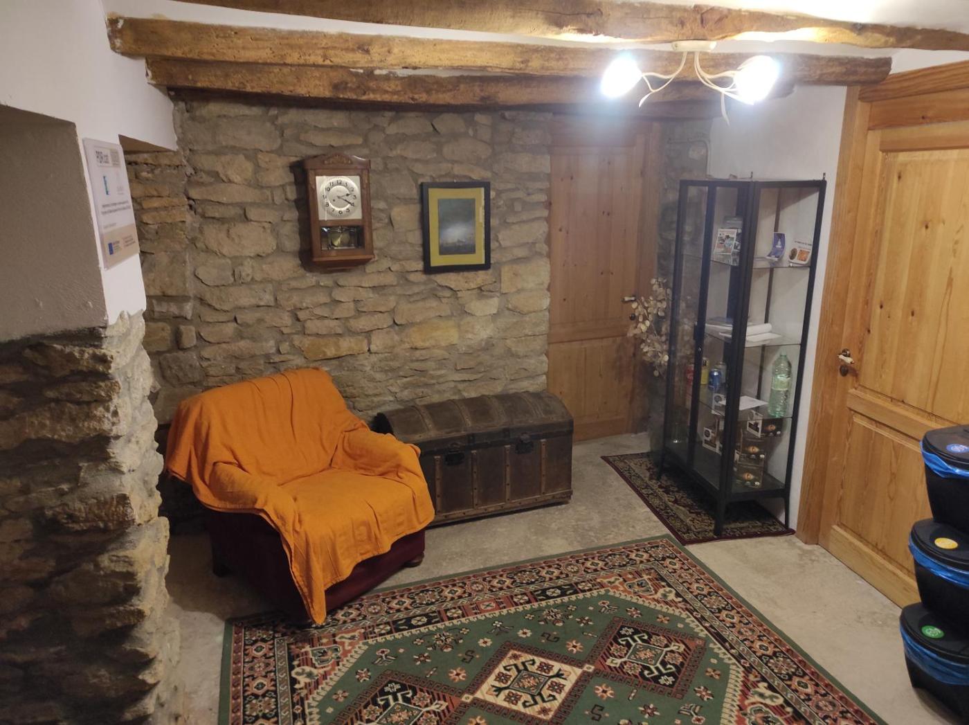 Después de un día de senderismo o ciclismo, la clientela puede relajarse en el jardín o el salón de uso común.