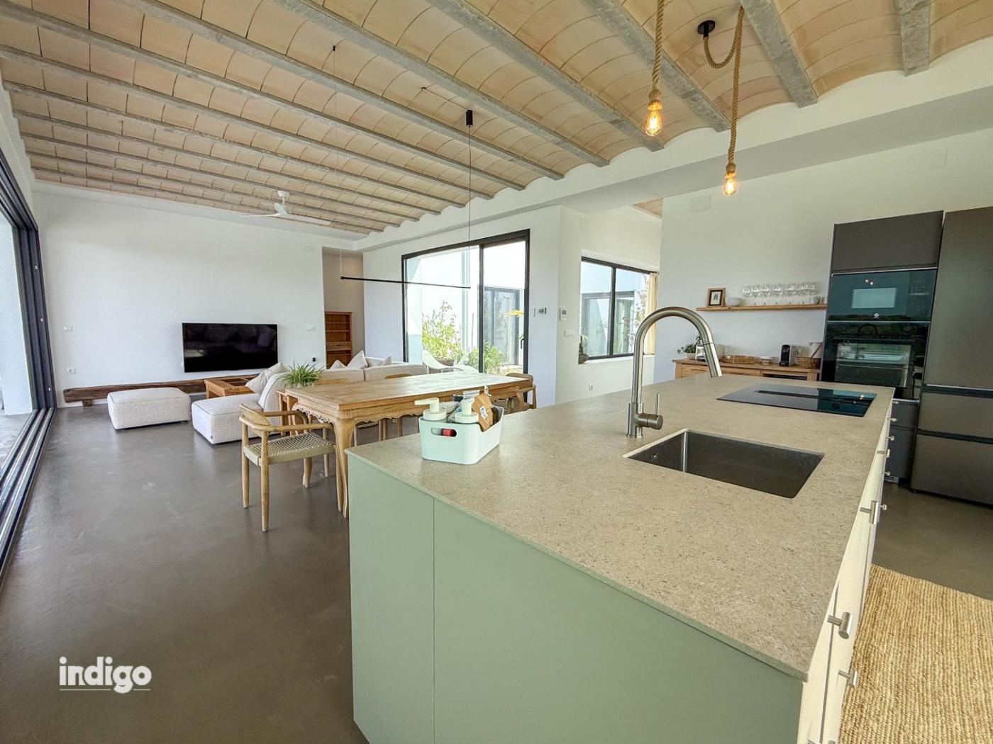 La villa cuenta con 4 dormitorios, 4 baños, ropa de cama, toallas, TV con canales por cable, cocina totalmente equipada y terraza con vistas a la piscina.