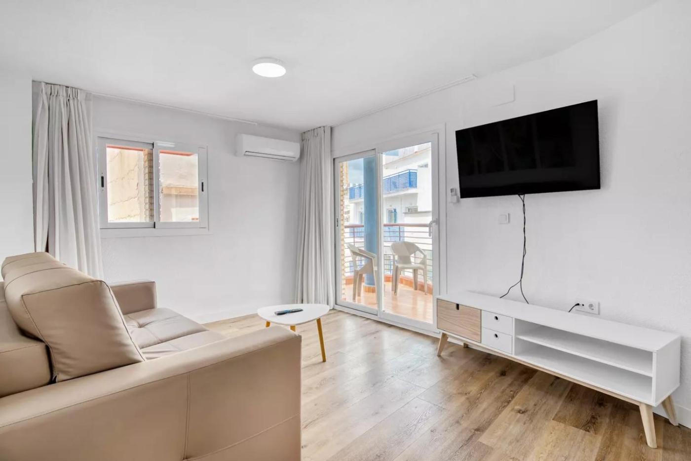 Apartamento con balcón. Este apartamento cuenta con aire acondicionado, sala de estar, dormitorio independiente y baño con ducha. La cocina está equipada con fogones, nevera, utensilios y microondas. El apartamento también cuenta con lavadora, paredes insonorizadas, teteracafetera, TV de pantalla plana y vistas a la ciudad. El alojamiento dispone de 3 camas. ;