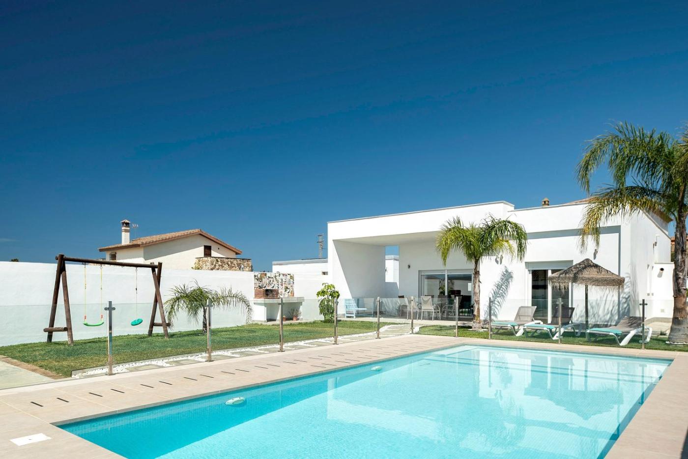 Casa Pepi Solo Familias está en Cádiz, a 15 min a pie de Playa de Fuente del Gallo y a 12 km de Real Novo Sancti Petri Golf Club, y ofrece alojamiento con wifi gratis, aire acondicionado y piscina al aire libre. Esta casa rural tiene piscina privada, jardín y parking privado gratis.