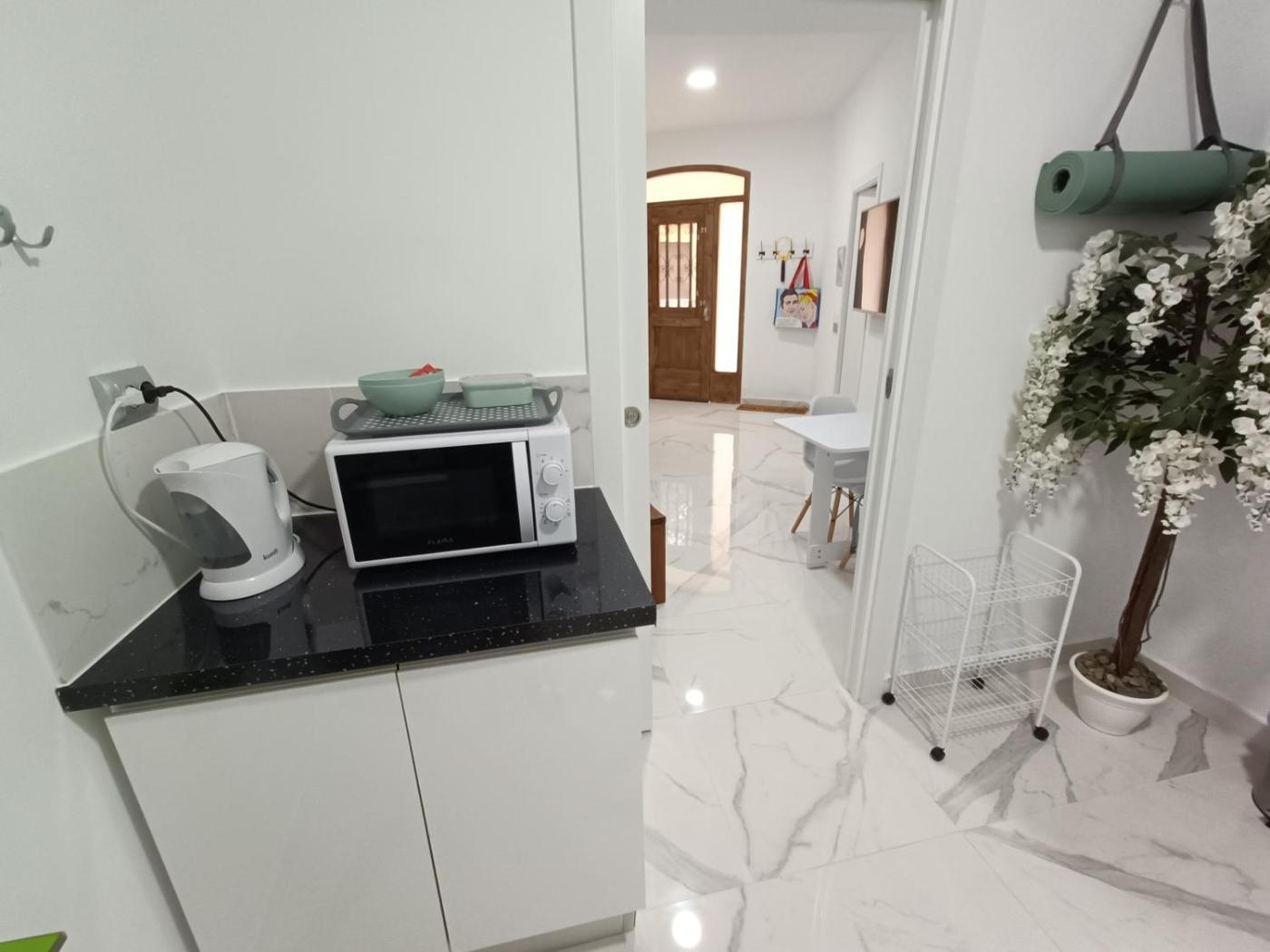 Este apartamento consta de 1 dormitorio, una sala de estar, una cocina totalmente equipada con nevera y cafetera, y 1 baño con ducha y artÃculos de aseo gratuitos. Hay toallas y ropa de cama en el apartamento.