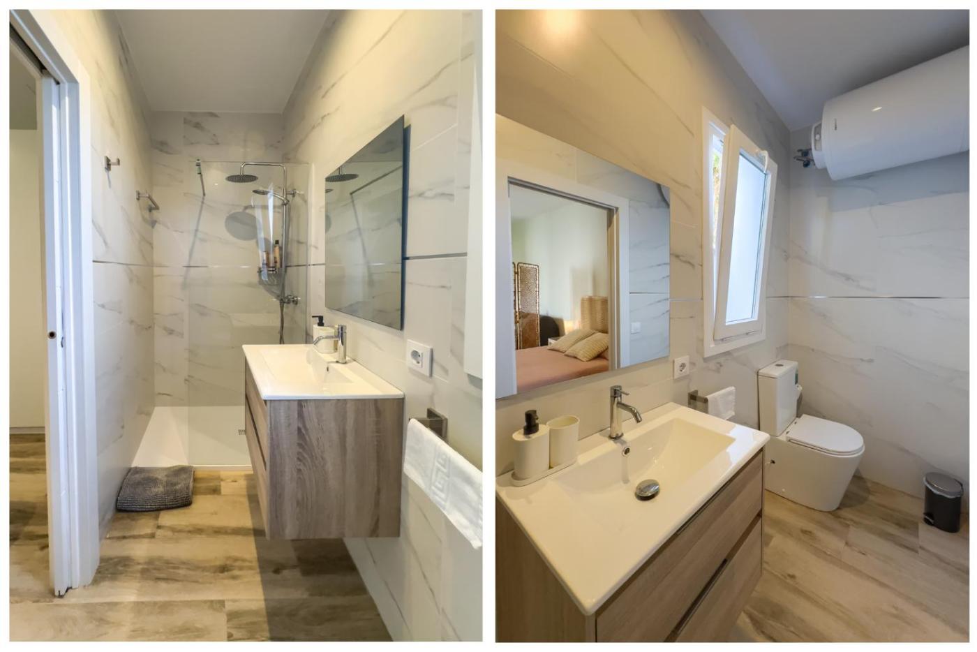 Esta casa o chalet con aire acondicionado consta de 3 dormitorios, una sala de estar, una cocina totalmente equipada con nevera y cafetera, y 4 baños con ducha. Hay toallas y ropa de cama en la casa o chalet.