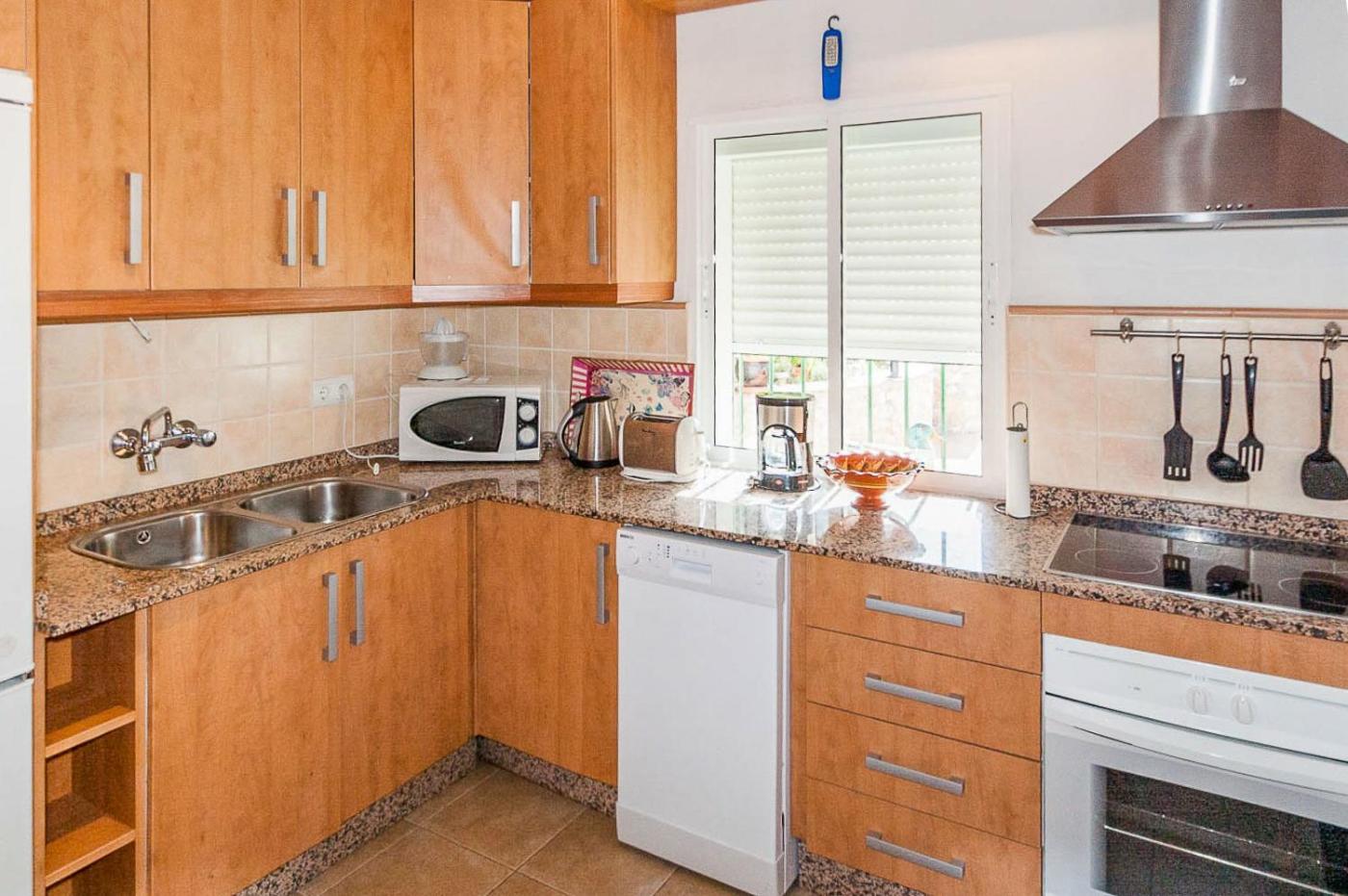 La villa dispone de 3 dormitorios, 2 baños, ropa de cama, toallas, TV, zona de comedor, cocina totalmente equipada y terraza con vistas al mar.
