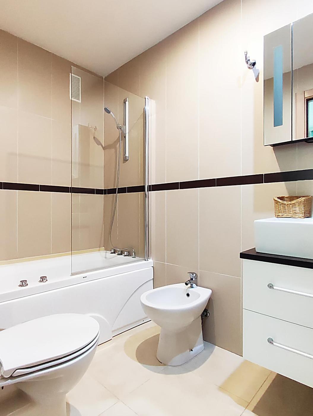 Este apartamento con aire acondicionado consta de 2 dormitorios, una sala de estar, una cocina totalmente equipada con nevera y cafetera, y 2 baños con bidet y ducha. Hay toallas y ropa de cama en el apartamento.