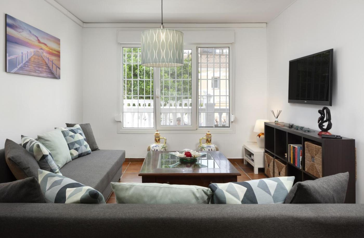 El apartamento de 2 dormitorios cuenta con sala de estar con TV con canales vía satélite, cocina totalmente equipada con lavavajillas y horno, y 1 baño con artículos de aseo gratuitos. Hay toallas y ropa de cama en el apartamento.