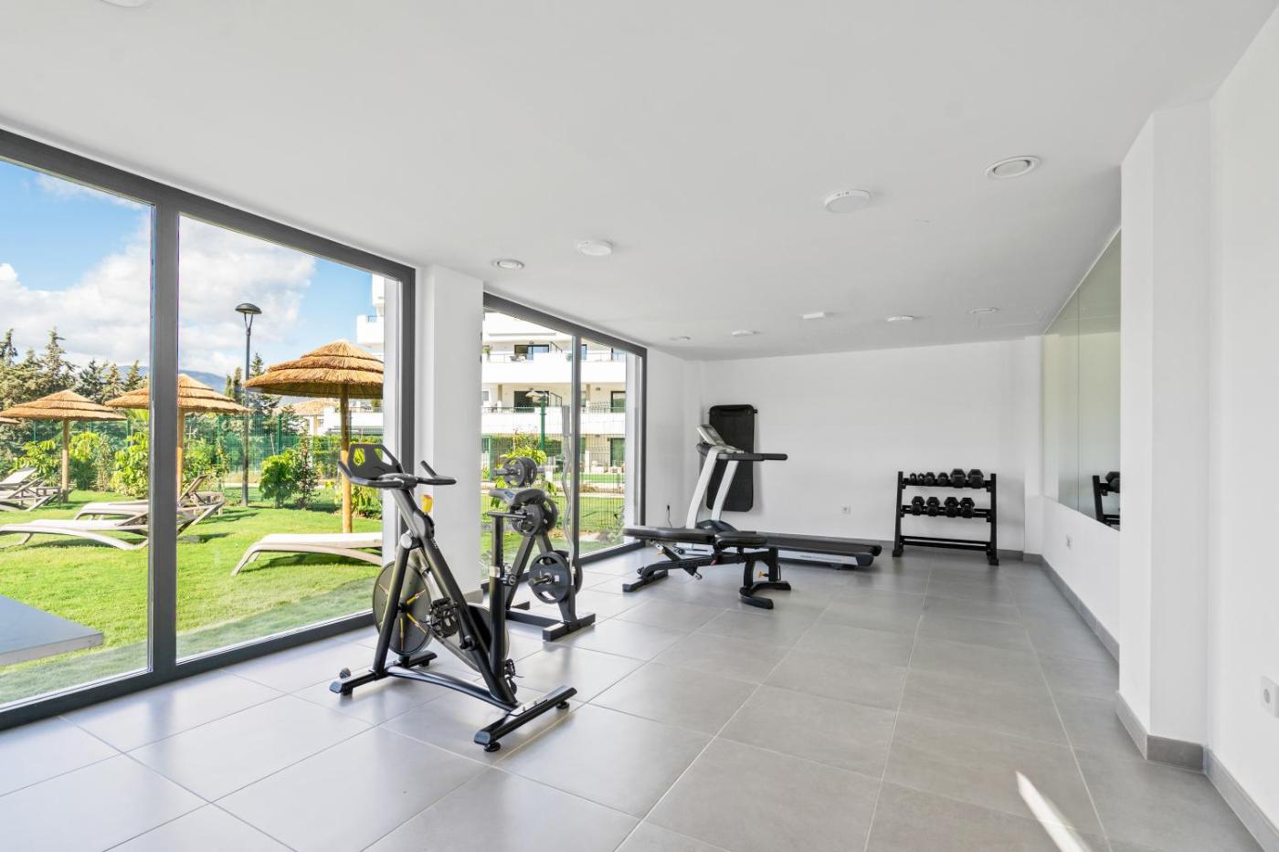 Garden Apartment Aranya - Pool, Gym and CoWorking Space, que cuenta con piscina de temporada al aire libre, centro de fitness y jardÃn, ofrece alojamiento en Estepona con wifi gratis y vistas al jardÃn. El alojamiento, que se encuentra a 2,8 km de Playa de Guadalmansa, dispone de terraza y parking privado gratis.