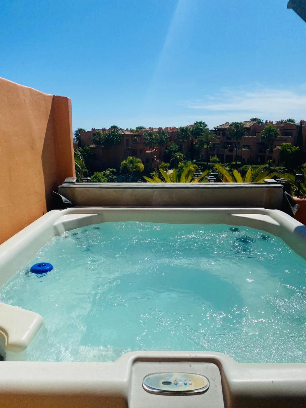 Sotoserena Ático con vista al mar y Gibraltar, que tiene piscina al aire libre, jardín y terraza, dispone de alojamiento en Estepona con wifi gratis y vistas al jardín. Hay parking privado en el propio alojamiento.