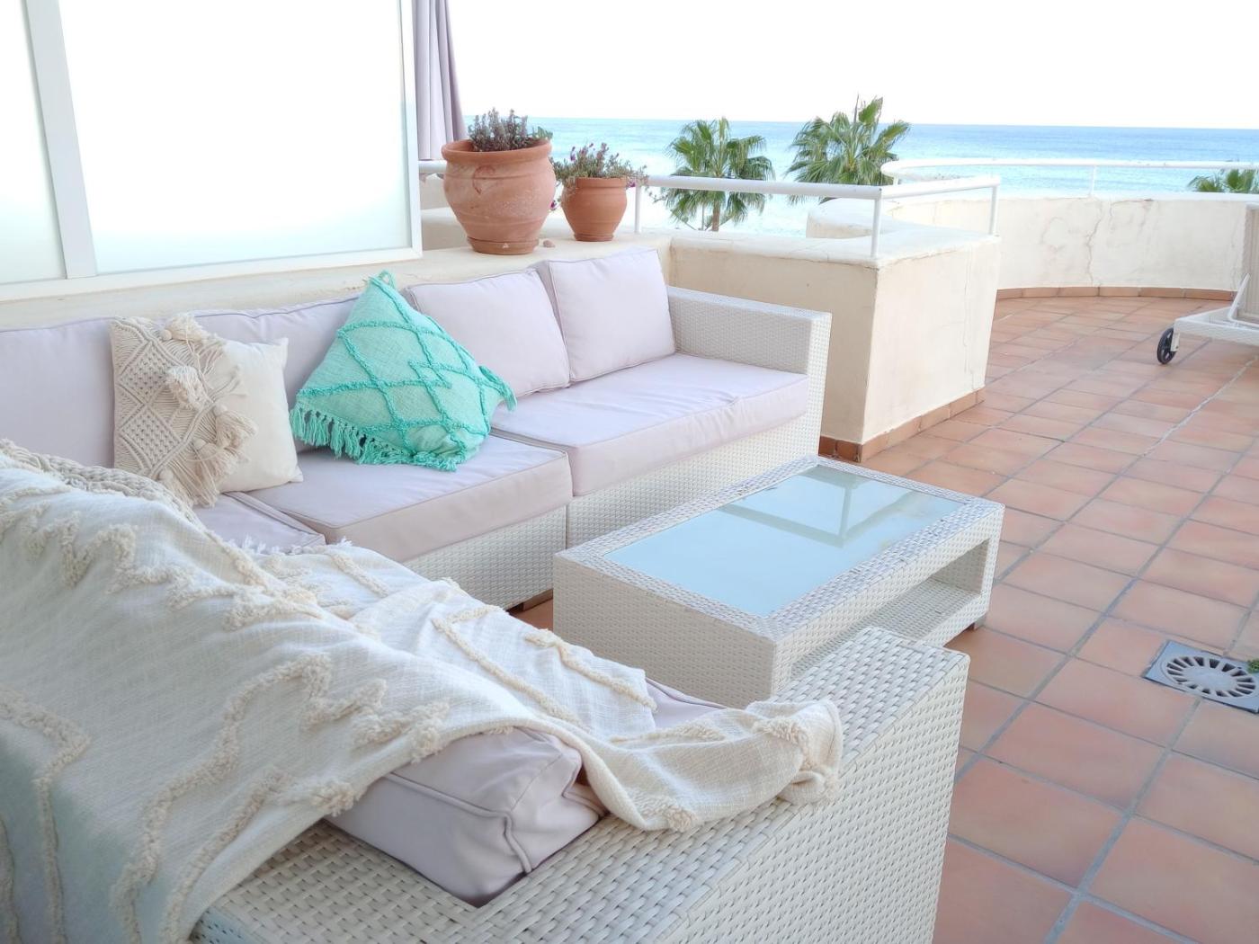 Apartamento de 2 dormitorios con terraza y vistas al mar. Boasting a private entrance, this air-conditioned apartment comes with 1 living room, 2 separate bedrooms and 2 bathrooms with a bath and a shower. The well-equipped kitchen has a stovetop, a refrigerator, a dishwasher and kitchenware. The spacious apartment features a washing machine, a tea and coffee maker, a seating area, a flat-screen TV with cable channels, as well as sea views. The unit has 3 beds.