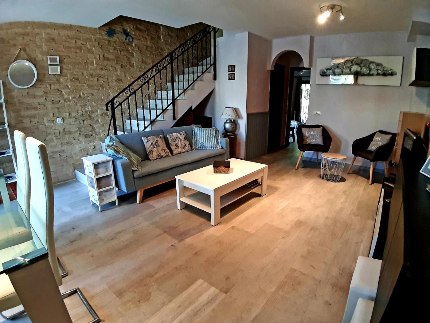 Esta casa o chalet con aire acondicionado consta de 3 dormitorios, una sala de estar, una cocina totalmente equipada con nevera y cafetera, y 2 baños con ducha. Hay TV de pantalla plana.
