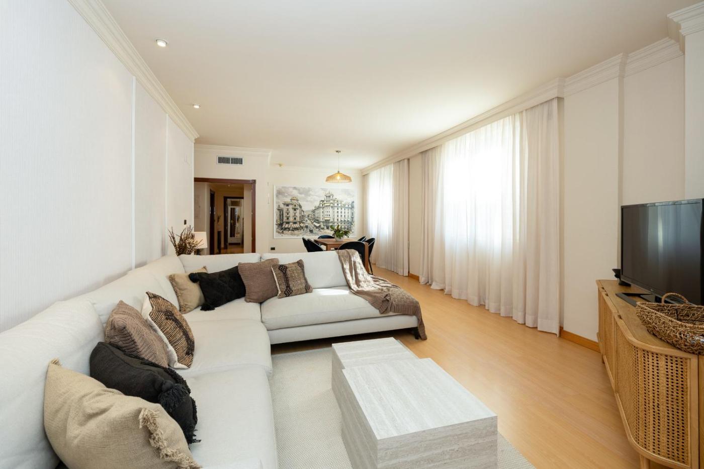 Apartamento con vistas a la ciudad. This spacious apartment comprises 1 living room, 3 separate bedrooms and 2 bathrooms with a shower and a hairdryer. In the fully equipped kitchen, guests will find a refrigerator, a dishwasher, kitchenware and an oven. The air-conditioned apartment provides a TV with satellite channels, a washing machine, a tea and coffee maker, tumble dryer as well as city views. The unit offers 4 beds.