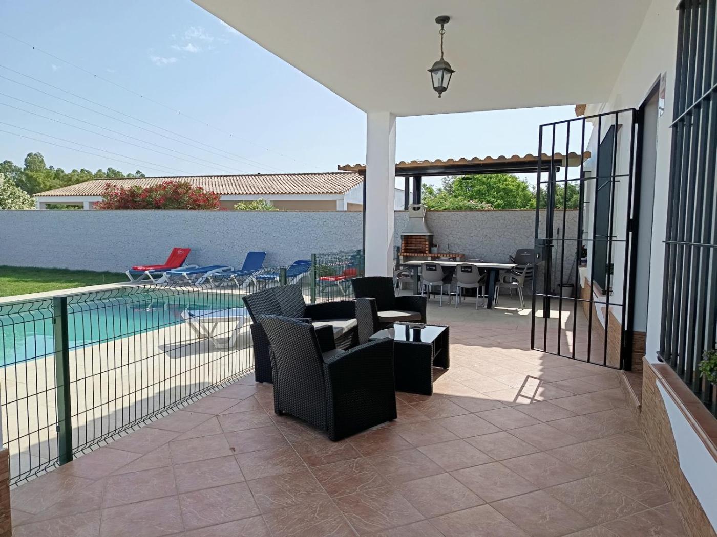 La casa rural cuenta con terraza y vistas a la piscina, y dispone de 4 dormitorios, una sala de estar, TV de pantalla plana, una cocina equipada con nevera y lavavajillas, y 2 baños con bidet. Hay toallas y ropa de cama en la casa rural.
