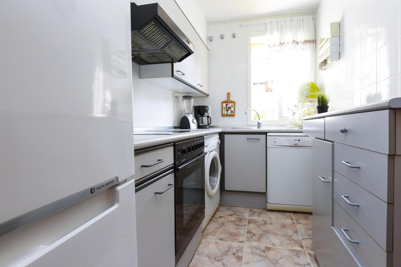Apartamento con terraza. This spacious apartment comprises 1 living room, 2 separate bedrooms and 1 bathroom with a bath. Meals can be prepared in the kitchen, which comes with a refrigerator, a dishwasher, kitchenware and an oven. The apartment provides air conditioning, a washing machine, a tea and coffee maker as well as a terrace with garden views. The unit offers 5 beds.