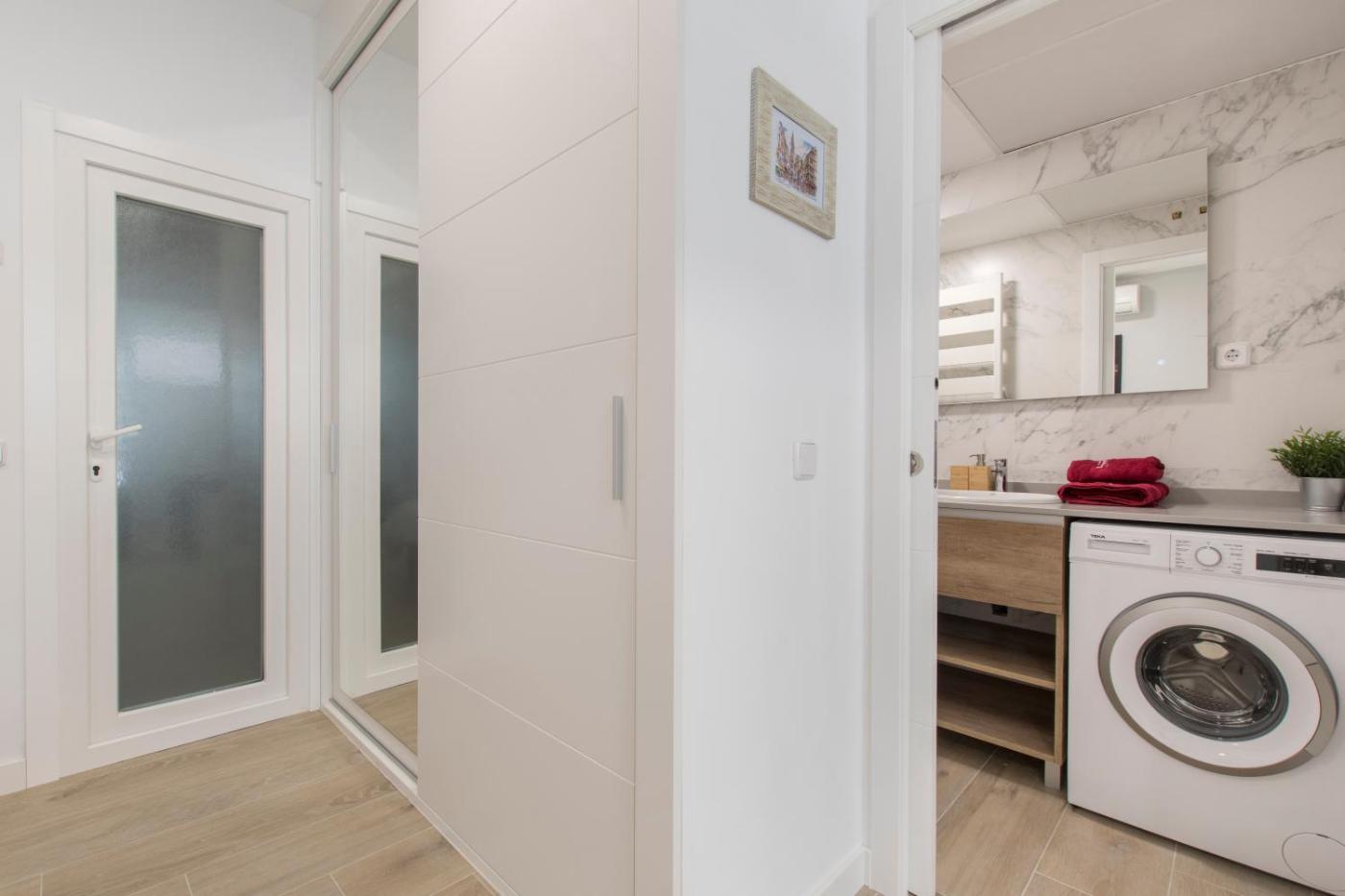Apartamento de 1 dormitorio. This air-conditioned apartment comes with 1 living room, 1 separate bedroom and 1 bathroom with a shower. Meals can be prepared in the well-fitted kitchen, which features a stovetop, a refrigerator, a dishwasher and kitchenware. The apartment features a washing machine, a coffee machine, a seating area, a dining area, as well as a flat-screen TV. The unit has 2 beds.