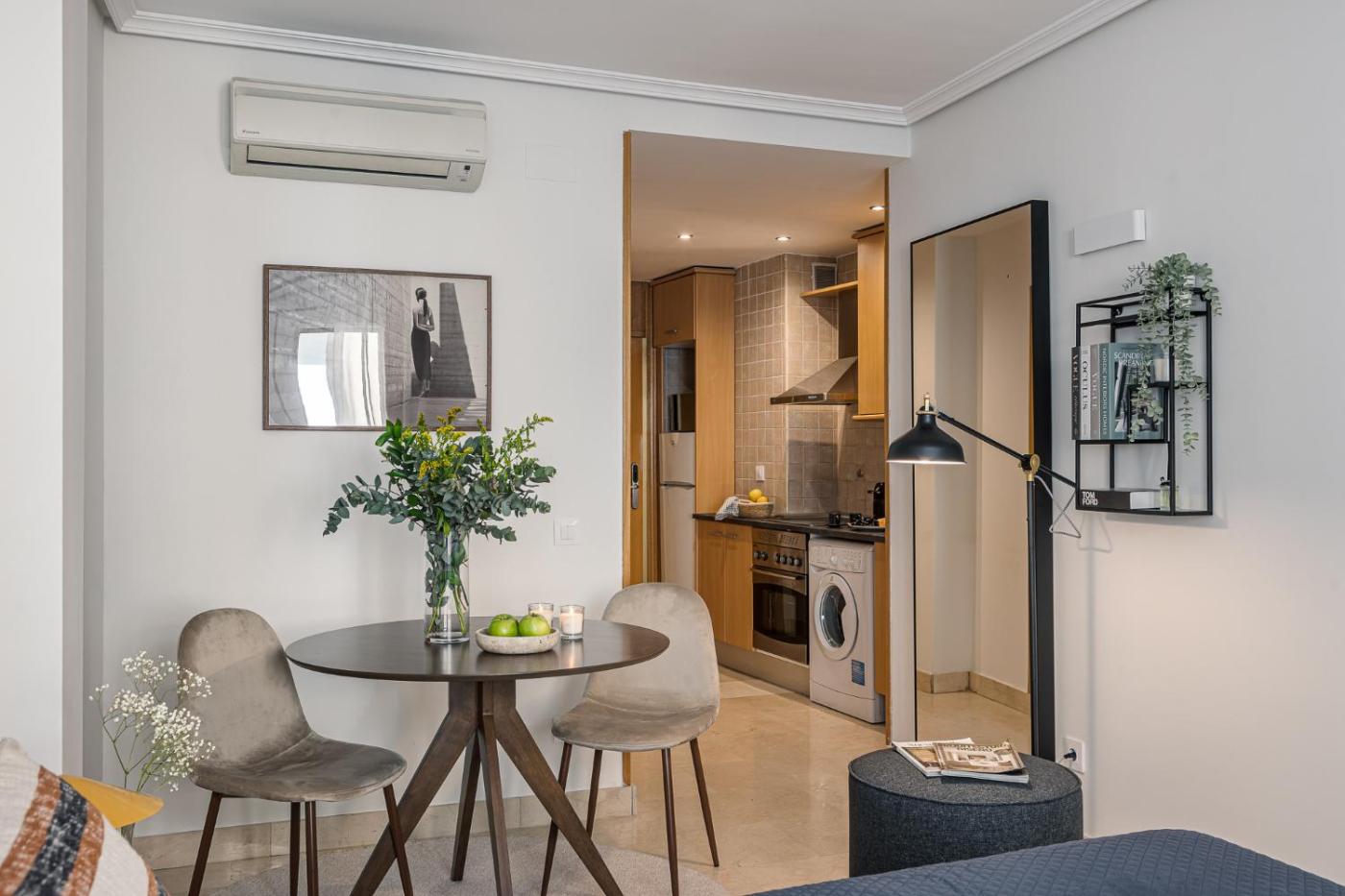 Apartamento de 1 dormitorio. The studio features air conditioning, a washing machine, as well as a private bathroom boasting a bath and a hairdryer. Guests can make meals in the kitchen that features a refrigerator, kitchenware, an oven and a microwave. Featuring a balcony, this studio also offers a tea and coffee maker, heating and a TV. The unit has 1 bed.