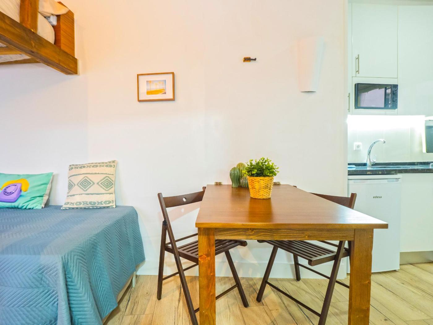 Estudio. The studio provides air conditioning, a washing machine, as well as a private bathroom featuring a shower and a hairdryer. In the kitchen, guests will find a refrigerator, kitchenware, an oven and a microwave. This studio features a tea and coffee maker, heating and a TV.