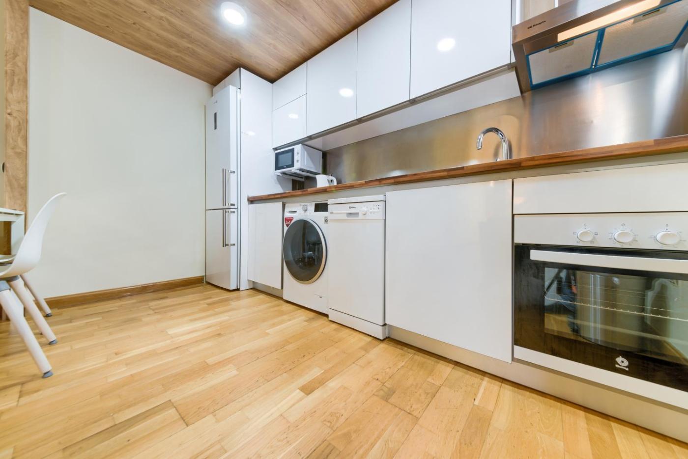 Apartamento - 2 niveles. This air-conditioned apartment features 1 living room, 2 separate bedrooms and 1 bathroom with a shower. Meals can be prepared in the kitchen, which has a stovetop, a refrigerator, a dishwasher and kitchenware. The apartment has parquet floors, a seating area with a flat-screen TV, a washing machine, a coffee machine as well as city views. The unit has 3 beds and 1 futon.