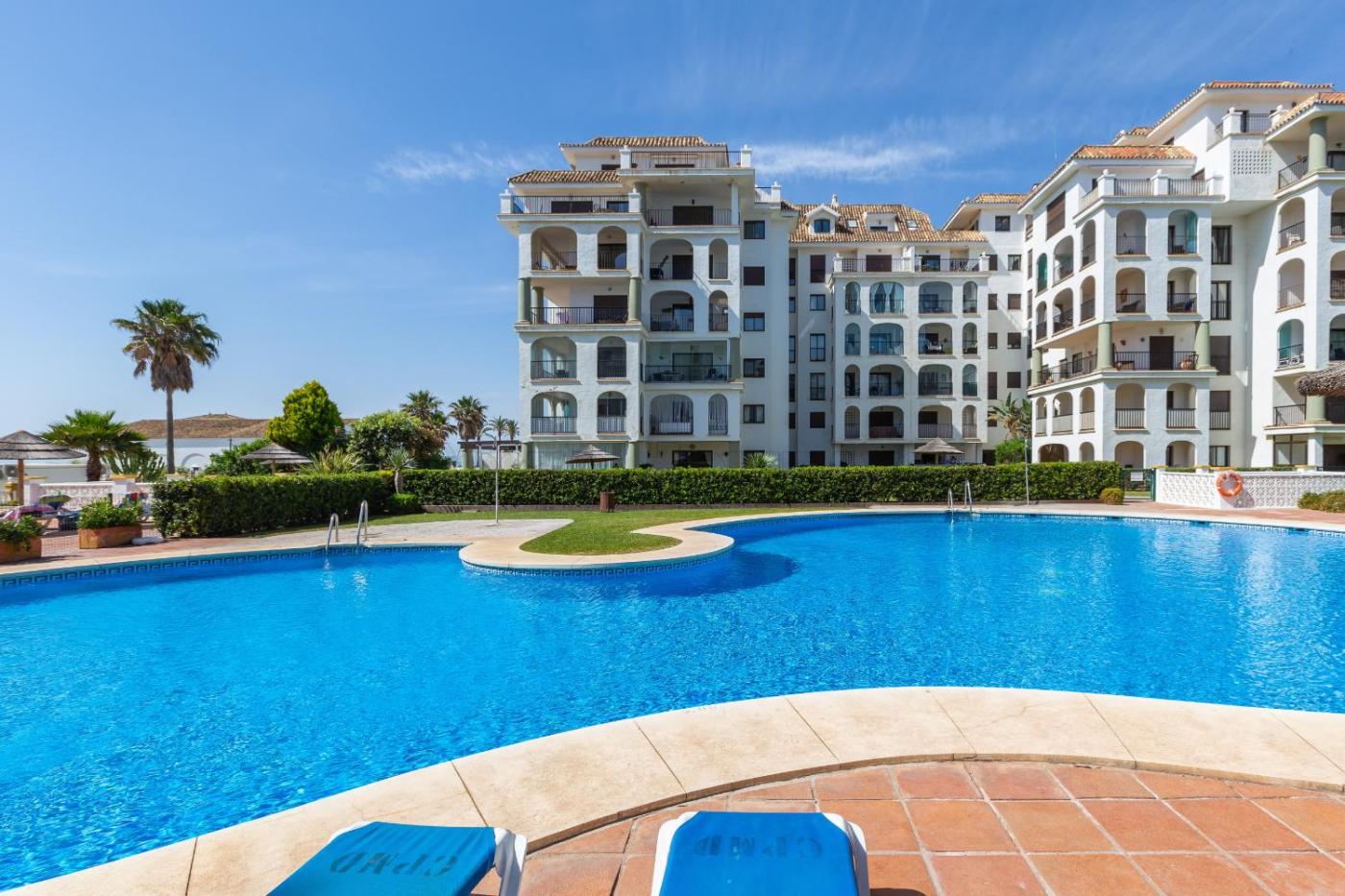 Marina duquesa 616, que cuenta con jardÃn, piscina al aire libre y vistas a la piscina, se encuentra en Manilva. Este apartamento con aire acondicionado ofrece alojamiento con balcón.