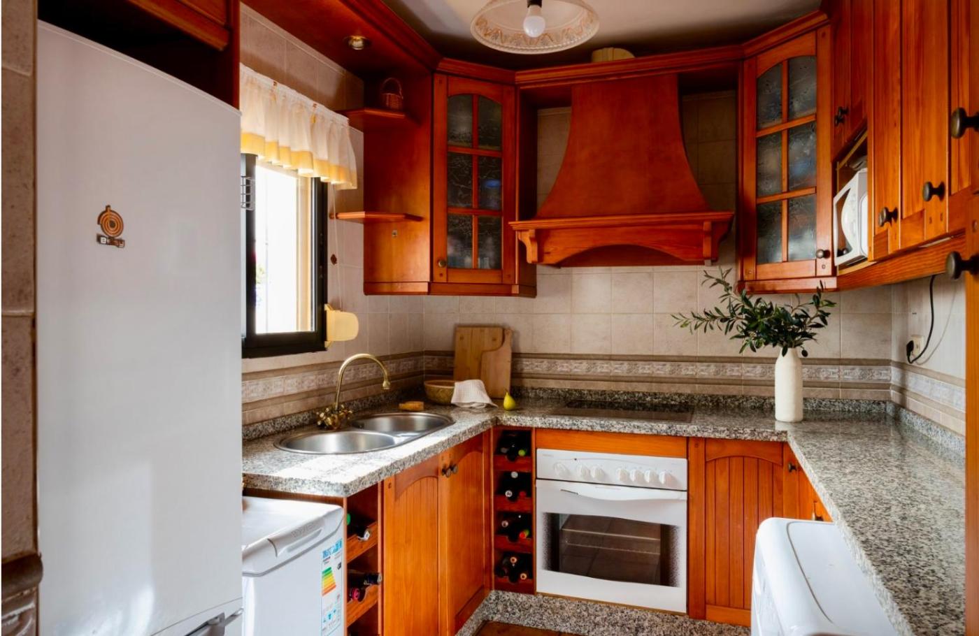 Casa de 2 dormitorios. This holiday home features a fireplace. Boasting a private entrance, this air-conditioned holiday home features 1 living room, 2 separate bedrooms and 1 bathroom with a bath and a shower. In the kitchen, guests will find a stovetop, a refrigerator, kitchenware and an oven. Featuring a terrace with sea views, this holiday home also features a washing machine and a flat-screen TV. The unit has 2 beds.