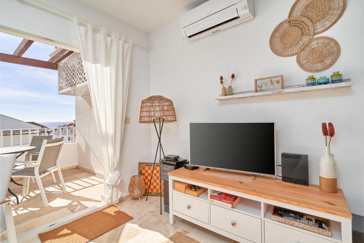 El apartamento cuenta con 2 dormitorios, 2 baños, ropa de cama, toallas, TV con canales vía satélite, cocina totalmente equipada y patio con vistas al mar.