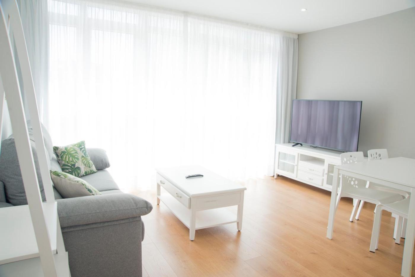 Apartamento de 1 dormitorio. This air-conditioned apartment includes 1 living room, 1 separate bedroom and 1 bathroom with a shower. Meals can be prepared in the well-fitted kitchen, which has a stovetop, a refrigerator, kitchenware and an oven. The apartment has parquet floors, a seating area with a flat-screen TV, a washing machine, a coffee machine as well as city views. The unit has 2 beds.