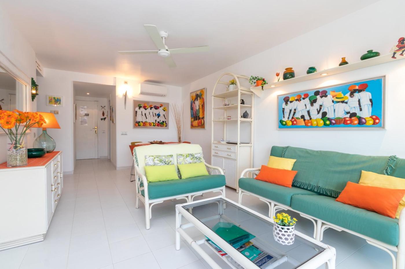 El apartamento tiene 2 dormitorios, 1 baño, ropa de cama, toallas, TV, cocina totalmente equipada y terraza con vistas al mar.