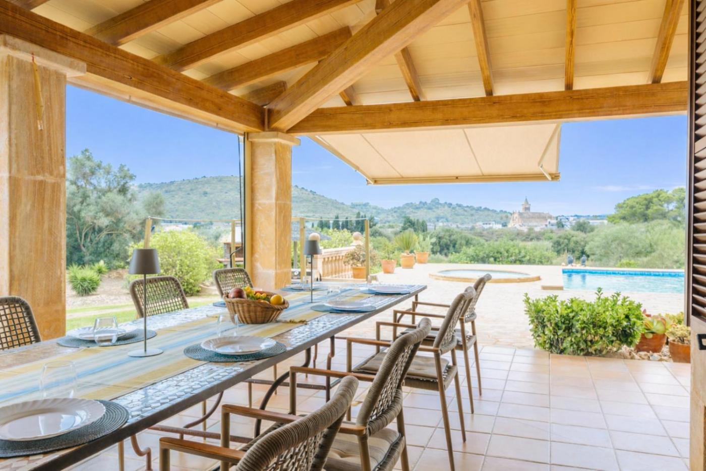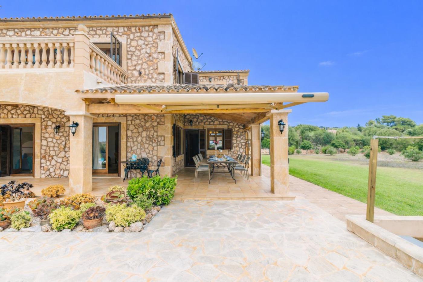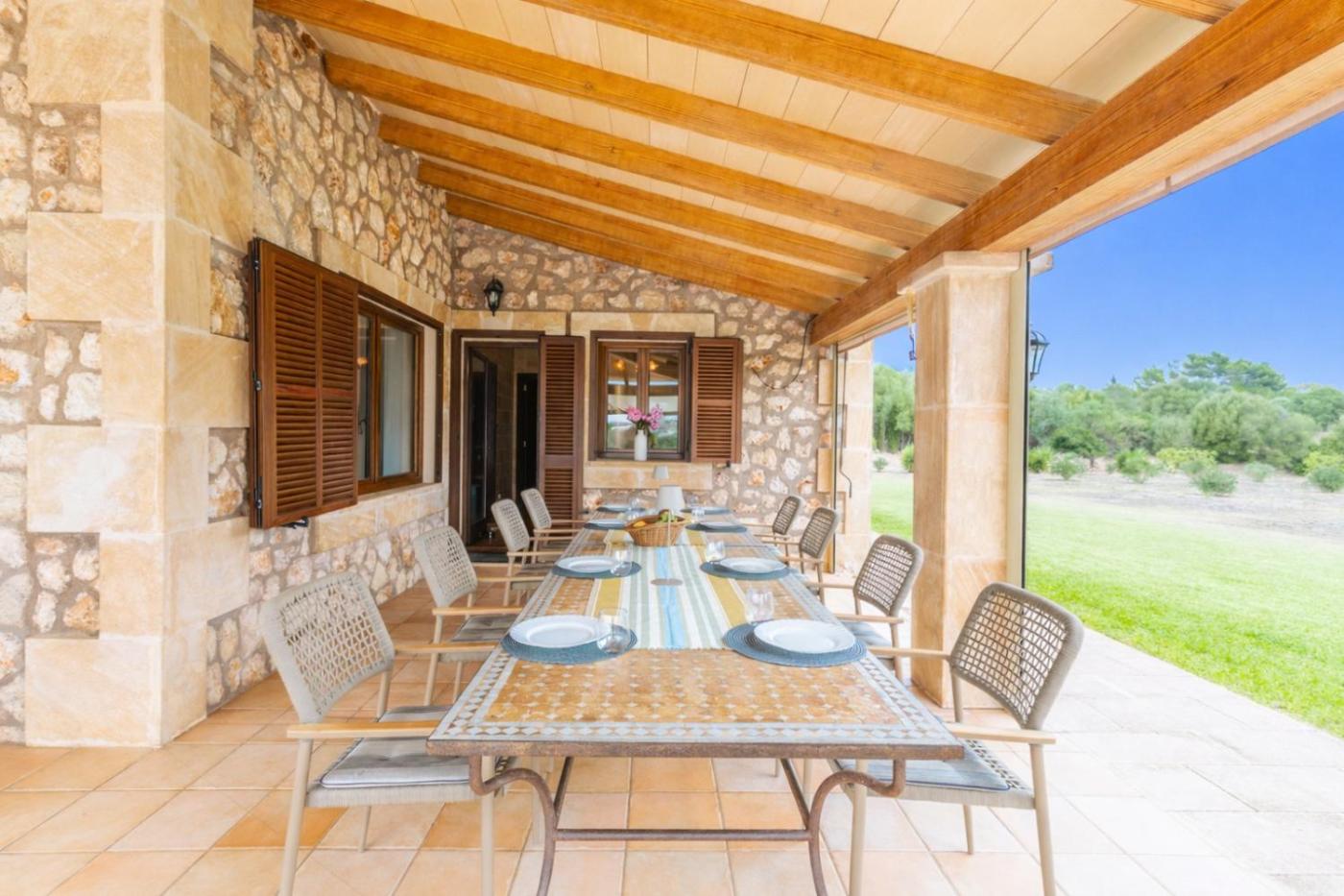 The Finca Es Molinet Nou is situated idyllically on a plot of over 21,000 m² with old olive trees – a place to relax and take a deep breath. At the same time, it is only 1 km to the charming village of Son Carrió,small restaurants, a bakery, a café and a supermarket are about ten minutes walk away. Several of the most beautiful beaches on the east coast, such as Cala Millor, Sa Coma or Cala Bona, are just 10 to 15 minutes away by car. Golfers will find several renowned courses in the area. Right outside the door, the Via Verde also starts, a car-free cycle and hiking path that winds about 30 km through Mallorcan nature to Artà – ideal for active holiday days.