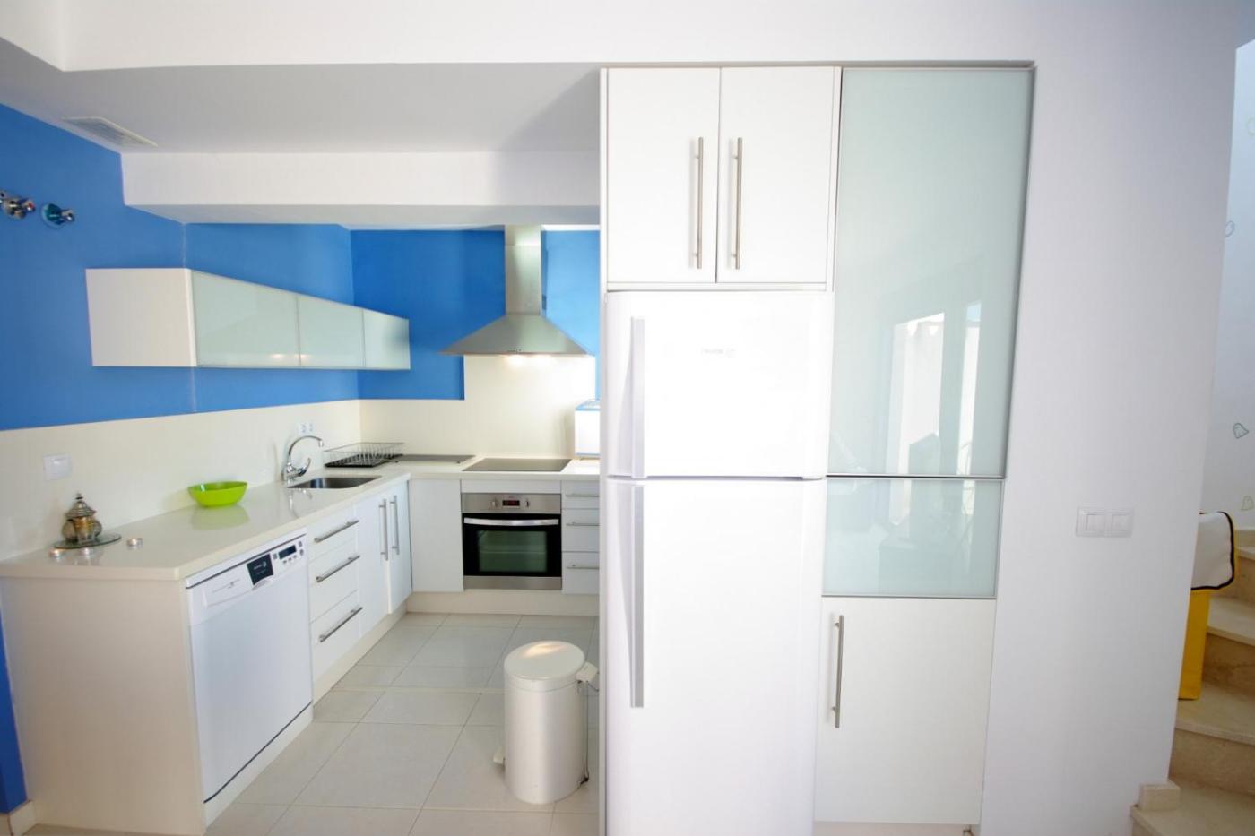 La cocina está equipada con nevera, lavavajillas y horno, además de cafetera y hervidor.
