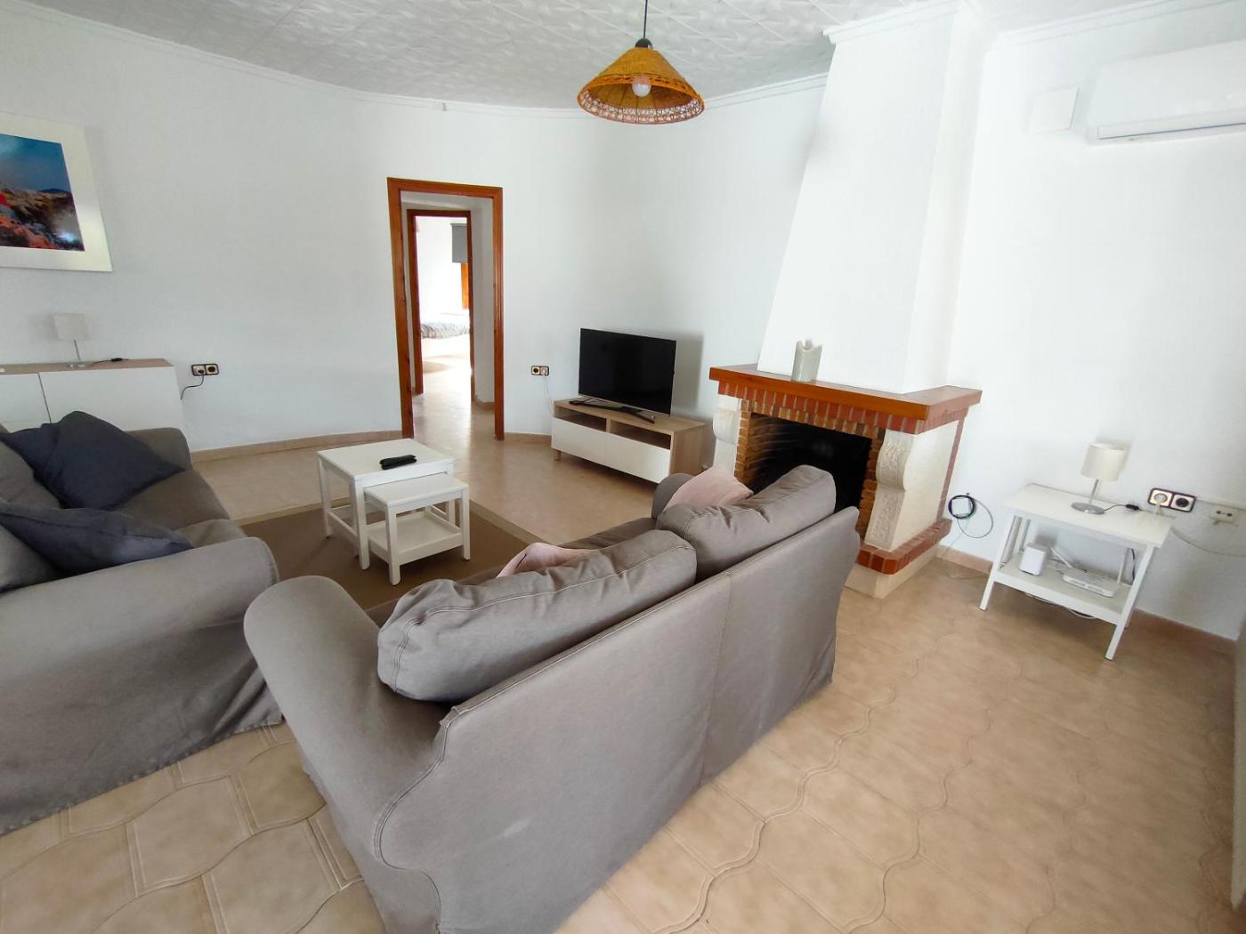 Esta casa o chalet con aire acondicionado consta de 3 dormitorios, una sala de estar, una cocina totalmente equipada con nevera y cafetera, y 2 baños con bidet y ducha. Hay toallas y ropa de cama en la casa o chalet.