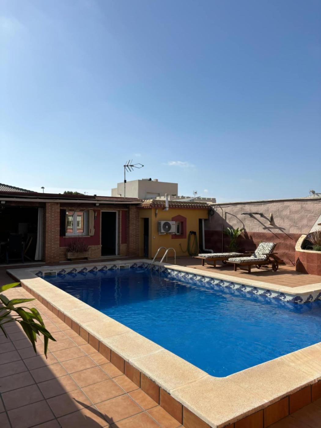 Casa de 4 dormitorios. The private pool and fireplace are the standout features of this holiday home. Featuring a private entrance, this spacious holiday home also consists of 4 bedrooms, a seating area and 2 bathrooms with a shower and a bidet. Guests will find a stovetop, a refrigerator, a dishwasher and kitchenware in the well-equipped kitchen. The holiday home also offers a barbecue. The air-conditioned holiday home provides a flat-screen TV with streaming services, a washing machine, a tea and coffee maker, a dining area as well as garden views. The unit offers 7 beds.