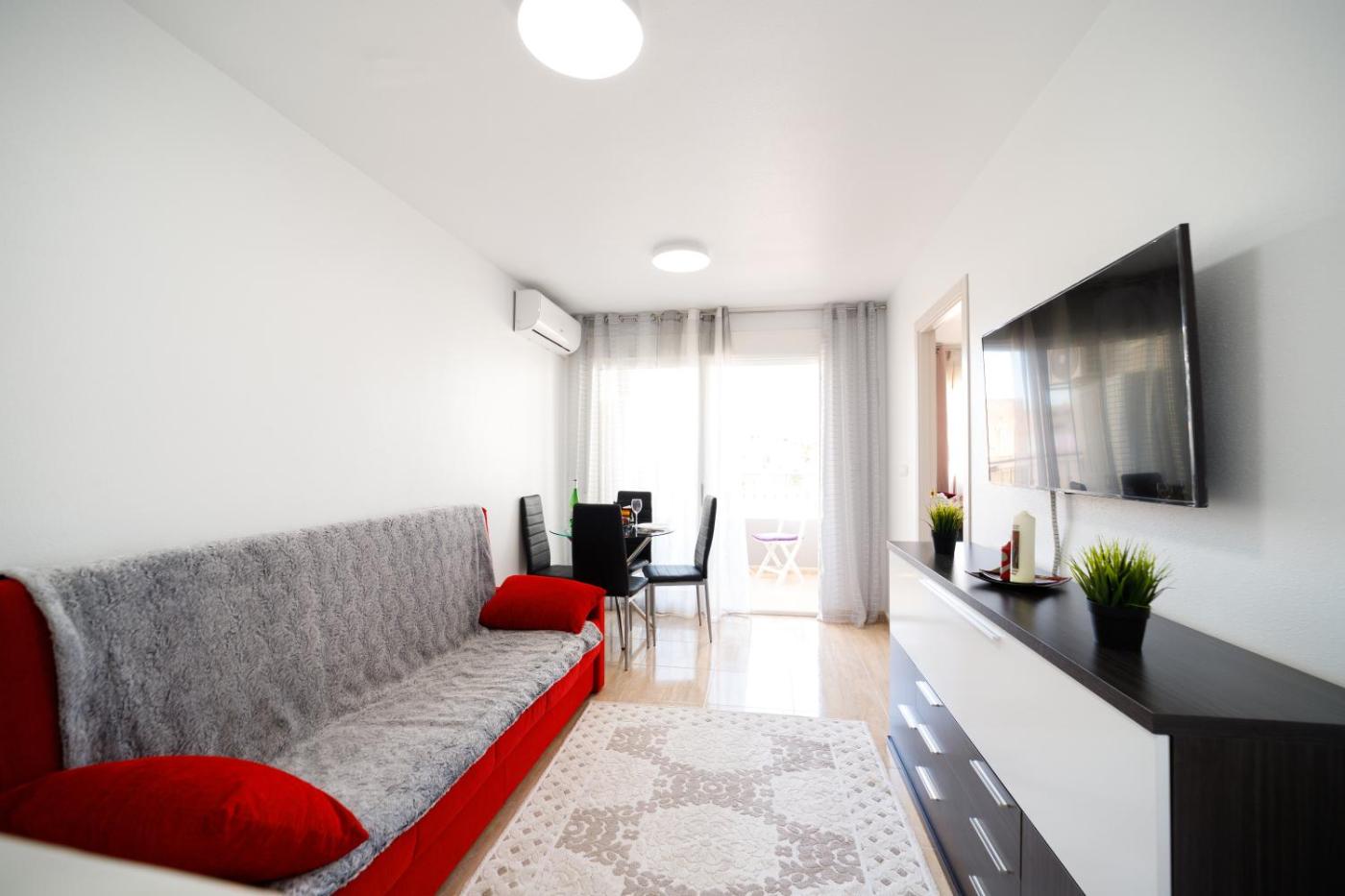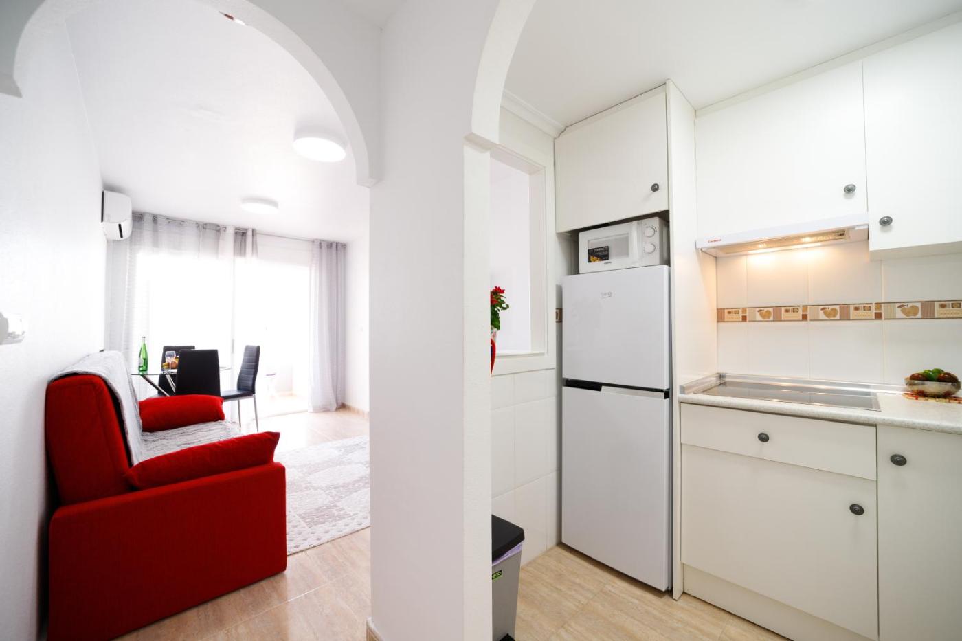 Apartamento de 1 dormitorio. This apartment features a private pool. This apartment comprises 1 living room, 1 separate bedroom and 1 bathroom with a bath and free toiletries. Guests can make meals in the kitchen that comes with a stovetop, a refrigerator, kitchenware and a microwave. The air-conditioned apartment provides a flat-screen TV with cable channels, a washing machine, soundproof walls, a tea and coffee maker as well as mountain views. The unit offers 2 beds.