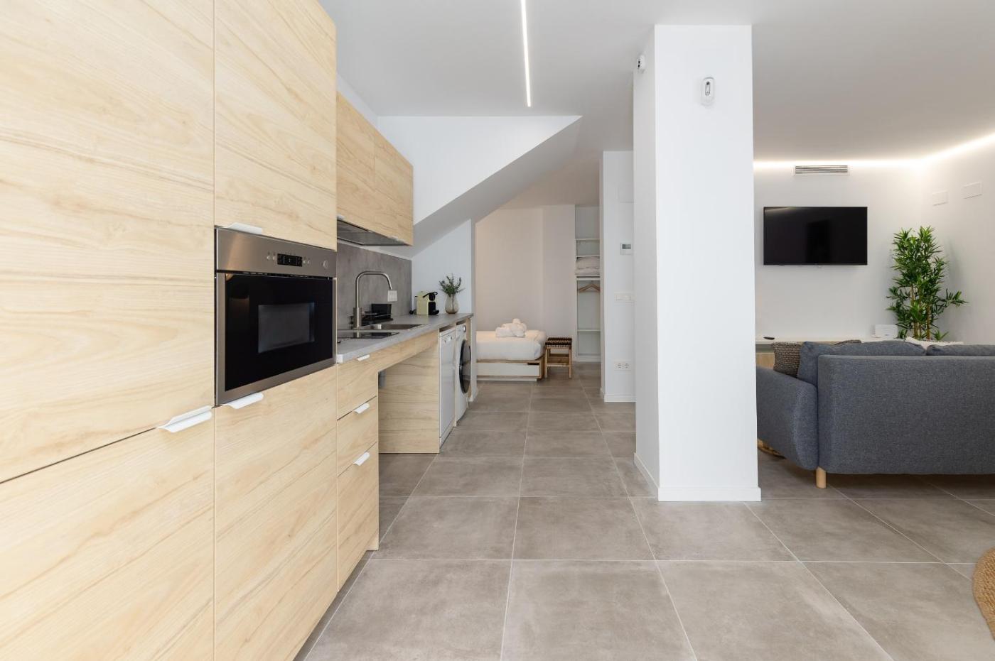 Estudio - Adaptado para personas con movilidad reducida. Guests can make meals in the kitchen that is equipped with a stovetop, a refrigerator, a dishwasher and kitchenware. The spacious studio provides air conditioning, a washing machine, as well as a private bathroom featuring a walk-in shower and a hairdryer. The unit offers 2 beds.