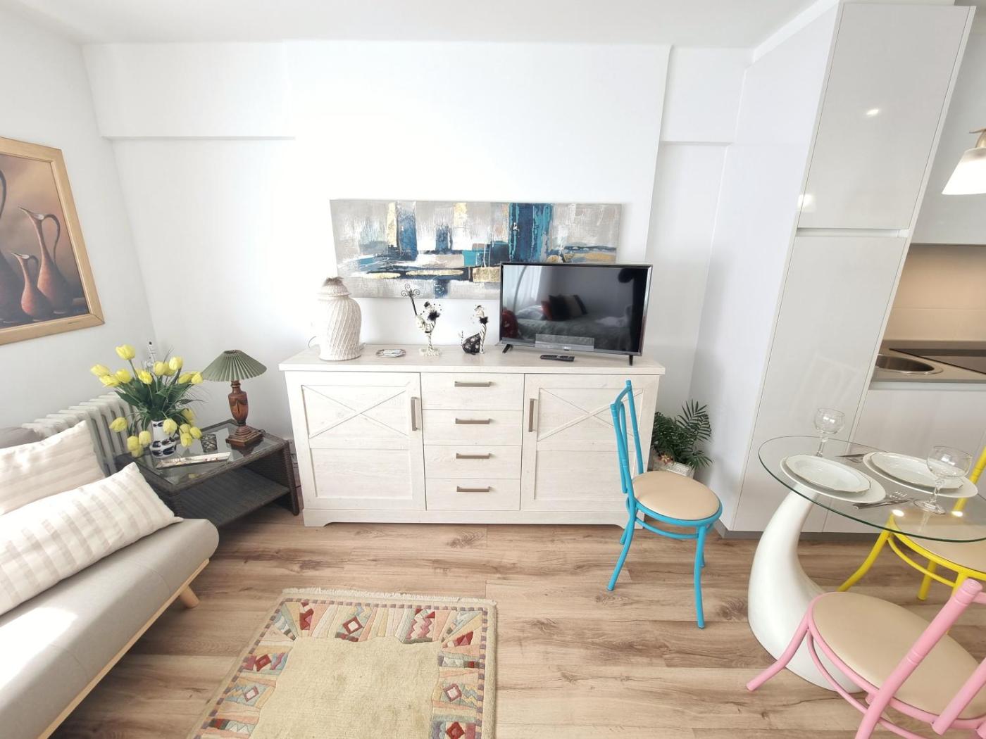 Estudio. The studio has a private bathroom, a washing machine, a private entrance, as well as a seating area with a flat-screen TV. Guests can make meals in the kitchen that features a refrigerator, kitchenware, a microwave and a toaster. This studio features a tea and coffee maker, TV, city views, as well as chocolate for guests. The unit has 2 beds.