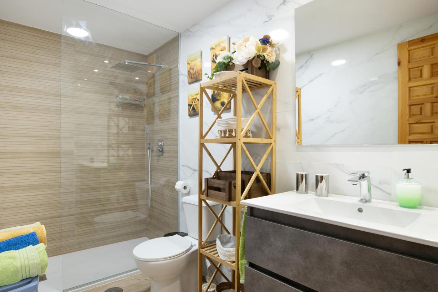 Apartamento Deluxe de 2 dormitorios con vistas al mar. This spacious apartment includes 1 living room, 2 separate bedrooms and 1 bathroom with a shower and free toiletries. In the well-equipped kitchen, guests will find a dishwasher, kitchenware, an oven and a microwave. Boasting a terrace with sea views, this apartment also offers air conditioning and a TV with streaming services. The unit has 4 beds.